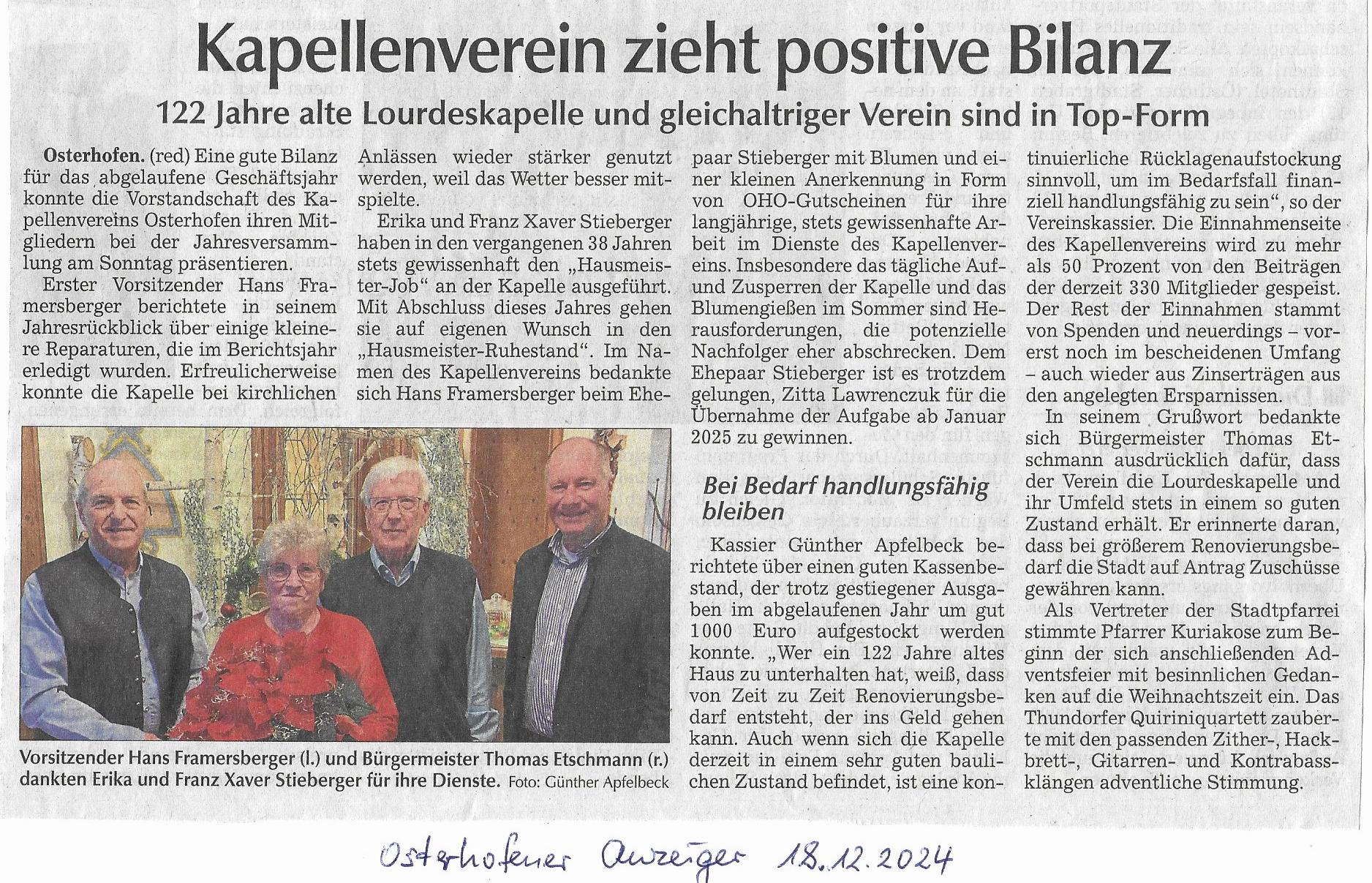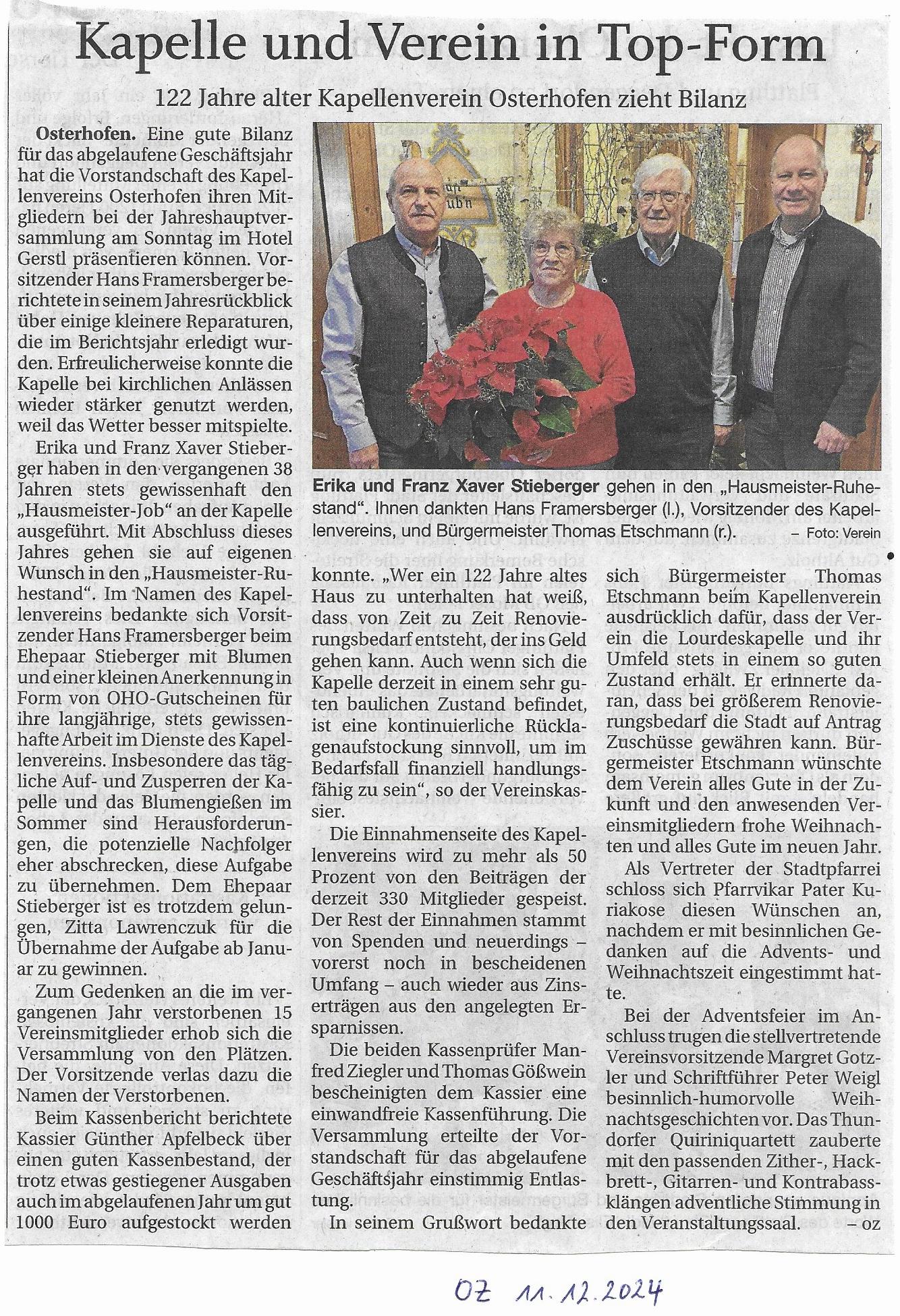 Die Jahreshauptversammlung mit Adventfeier 2024 fand am Sonntag, 8.12.2024, im Hotel Gerstl statt.